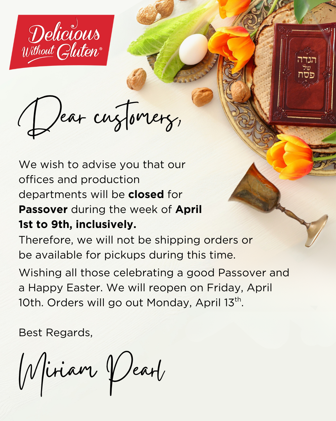It surprises me that Toronto doesn’t have a kosher bakery that makes gluten free baked goods. Anyways, thank you from the entire family.